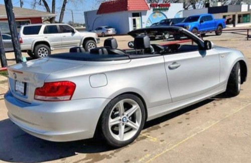 This 2-door 2012 BMW 128i is a beautiful and well-kept silver convertible. Open or remove the top with a button. Everything works fine on it, has new brakes, no major issues, it's perfect for a girl, features black leather interior, infotainment system, sporty rims, fog lamps, black soft top, lowered body, low profile tires, all power options, etc.