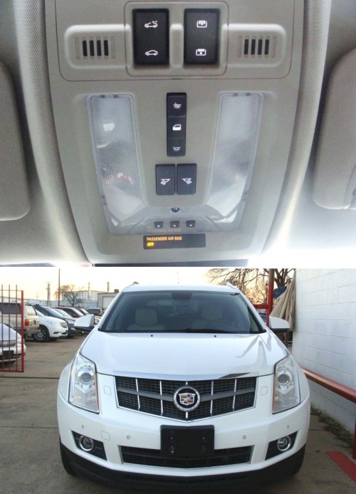 Premium Collection model. Clean title. 5-star safety ratings. Take it home for $6000, CASH DEAL. This eco-friendly luxury SUV boasts a spacious interior, high-quality materials, advanced technology, a powerful V6 engine, strong performance, elegant exterior design, a power liftgate, and many other features and options such as power front seats with memory, tan leather premium seats upholstery, trunk space cover, touchscreen stereo, navigation, rear camera, ignition push-button, heated seats, dual-zone climate control, rear AC, XM satellite radio, rear DVD entertainment, panoramic sunroof, rear AC control, rear audio control, chrome rims, roof rails, dark-tinted windows, dual exhaust, etc. If you're searching for a premium SUV in TX near Irving or Dallas priced at around 6k dollars which offers a stylish design and a blend of luxury, performance, advanced technology, and safety, you should take a look at this 2012 Cadillac SRX Premium.
