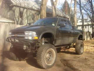 This is a 2001 Chevy S10 pickup truck lifted for sale by owner in CT under $6000 dollars only. It has been build as an off-road truck, but it didn't had much chance of being on that road as it was used as streetcar. However,I checked its condition on rough terrain, and it has been excellence (highway / off road). I never had any trouble with this S-10. Suspension, driving gear, steering system wheel adapted for hard condition. Ideal car for deep mud and steep rocky roads. Fuel consumption is S10 5-15% more then stuck S10. Front axle Dana 30, 4:88 ratio with automatic lockers, all custom Yukon Gear Parts. Rear axle with Yukon Gear Parts also. Drive shift's are prime quality. Solid and properly made suspension, optimal lift for all kinds of circumstance with pleasure. It comes with new tires of 34", perfect for wet terrain or on the slippery rocks. There is only one defect, they are loud on asphalt. Radiator is new and tune-up parts are new. I took good care of this car, interior is very clean. Exterior has some dents and minor scratches. This Chevy has air compressor, high lift, toolbox, 6 CD's, power windows and locks, also costume build bumpers. Air conditioning works very well. TRUCK IS READY FOR SEASON. Any question please call (860) 216 6782 or email mielochp@yahoo.pl