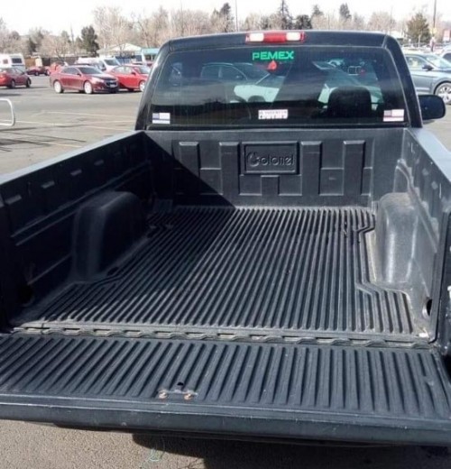 I have a lowered single cab, it has leather interior seats. It has a 5.3L engine V8. This black Chevy 1500 Silverado for $2,500 in Denver-Colorado is an RWD truck and it's automatic. I don't move this truck when it snows due to it being an RWD but I'm sure putting weight on the back she'd be fine. The truck doesn't have any mechanical issues regarding the motor but it will need the oxygen sensor, it also does need a front bumper. It has manual windows and will need some speakers. Overall she's a great truck.