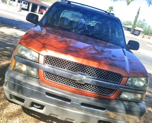 Great reliable strong truck for $5K. Sunroof, towing package, roof rails, custom tires and rims, beige interior. Orange Chevy Avalanche 2004 in Tucson-Arizona.