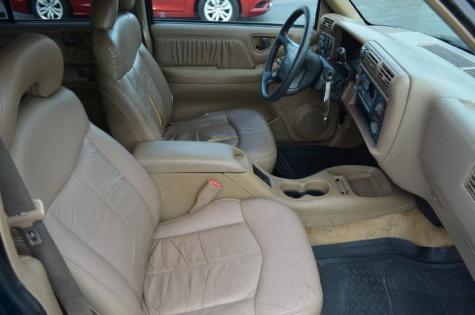 This green Blazer LT or Limited comes equipped with all features: power driver's seat, power windows, power locks and mirrors, tinted windows, towing package (front tow hooks, trailer hitch), fog lamps, aluminum wheels, leather seats, AM/FM stereo with CD player, roof rack, bug deflector, front and rear cupholders, and more.