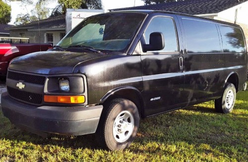 Great working van, has new tires, and transmission is strong and reliable. Black Chevy Cargo van in FL 33880.