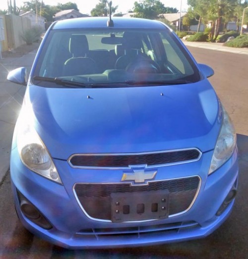 Blue exterior. Chevy Spark in like-new condition, only 10k miles, for less than $5K in Arizona. Vehicle has a clean title and clean Carfax. Black interior, premium stereo, fully LOADED, has new tires, PRICE INCLUDES tax and title (out of the door).