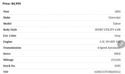 It seems you found a good car, but if this gold 2003 Tahoe isn't what you're looking for, please check other below: