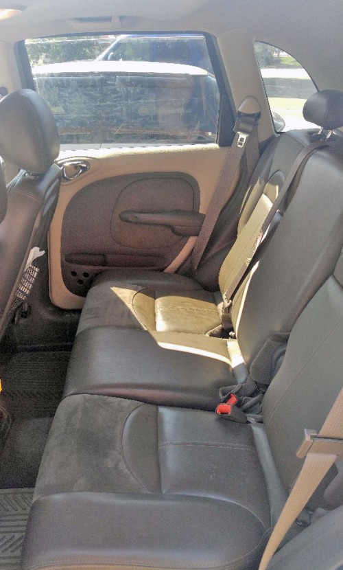 2002 Chrysler PT Cruiser Limited, 5-speed manual. Has a little over 98,000 miles. Leather seats. Driver and passenger heated front seats. Power sunroof, door locks and alarm. Factory CD, cassette, and AMFM radio. Good tires on 16" rims. Gets great fuel mileage. Estimated about 18 mpg city and 27 on highway. July of 2016 I had a new timing belt, water pump. Has been an excellent car. Runs and drives very well. Great first car and is dependable and reliable.