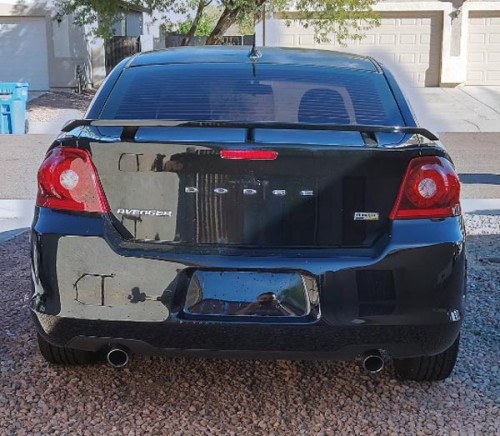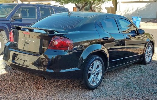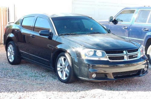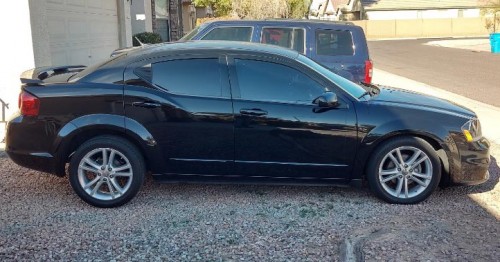 Selling my low mileage Dodge Avenger SXT 2012 with 91K black exterior for less than $6K in Laveen-Arizona. The car runs 100%, has no lights on the dash, the interior is practically perfect, everything works, has faded paint on the roof and window tint, also has Bluetooth, fog lights, rear spoiler, dual exhaust, power driver's seat, multi-function steering wheel, stereo with USB and auxiliary audio entry, nice rims, etc.