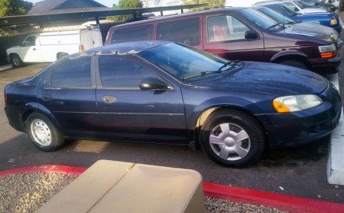 Dodge Stratus '03 for less than $2K in Phoenix-85032, dark blue exterior paint, good AC, economy 4-cylinder engine, car runs and drives good, the only flaw is some wear and tear in the original paint.