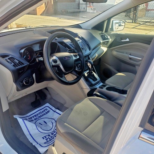 This white SUV Ford Escape SE 2014 is ready to go! Clean family vehicle with no issues. This vehicle has all the power options, rear trailer hitch, fog lamps, rear camera, dual exhaust, tinted windows, nice rims, tan cloth interior, digital dashboard display, multi-function steering wheel, etc. It is MD state inspected and financing is available. Please call or text 240-554-5899 for availability, schedule a test drive, and more information.