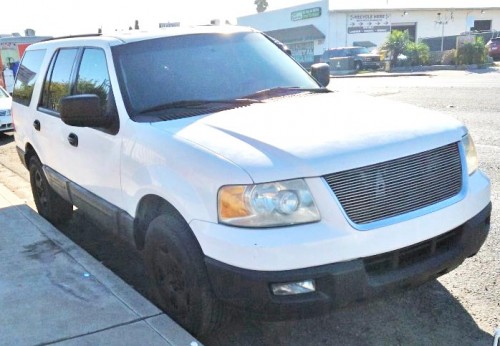 White Ford Expedition 2004 under $3K. Never used, tags just expired, this SUV runs amazing, it has no problems... Just needs driver side window... I want to trade it for a motorcycle, otherwise, the first one who comes with $2500, can take it. 230k miles. Located in San Diego 92154. Roof rails, towing package, black rims, fog lights, dark tinted windows, all power options, good overall condition.