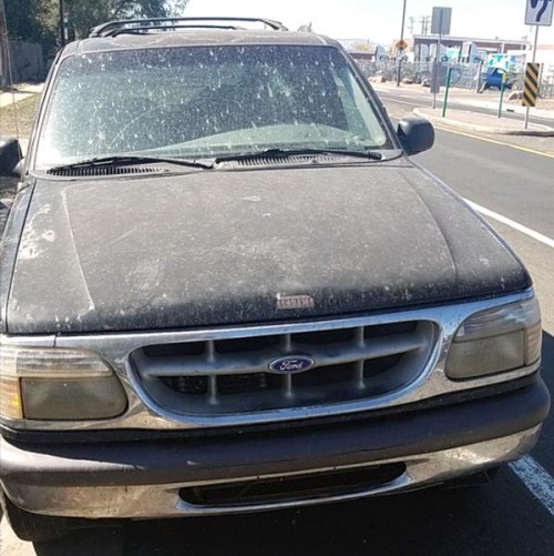 Black Ford Explorer '97 for $500 in Colorado-80110. The SUVe isn't in bad condition, the linkage is off, it still runs and drives, there ain't no pipes so it's loud and the radio is missing. I have no title or any proof of ownership. Roof rails, sunroof.