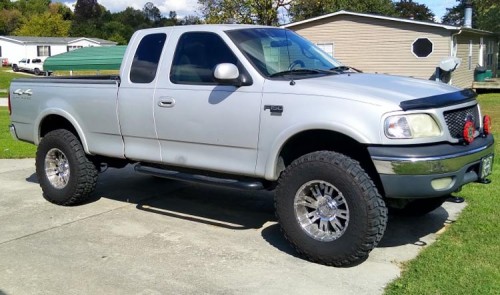 Lifted 4x4 F150 truck under $5K in Lenoir City-Tennessee. This Ford runs great, no smoke, has a lot of new parts, new tires, the hood has a spot on it, needs painting and the very top needs painting, not the perfect truck but has its things but good shape for its 01. Running boards, tinted windows, alloy wheels, bed liner, power seats, well-kept clean interior.
