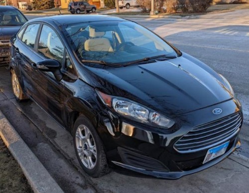 Four-door economy sedan with low miles Ford Fiesta SE, year 2010, black exterior paint, with clean title, only 66k miles, 3 keys, the price is negotiable, open to offers, very economical and comfortable vehicle, great for daily use, the engine and transmission are in pretty good condition, beige interior, nice rims, etc. For sale by owner in Robbins-Illinois, asking for $7,200.