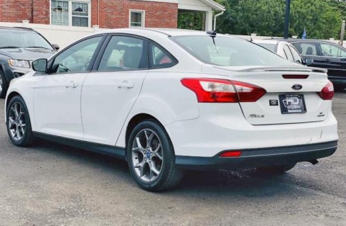 MPG: 27 city / 38 hwy. Clean Carfax, 6 month warranty included. Flex-fuel. White Ford Focus SE 2013 4-door sedan with only 104k miles for less than $8K. Loaded with aftermarket nice rims, fog lights, rear spoiler, black leather seats, infotainment system, multi-function steering wheel, all power options. Clean and well-kept interior.