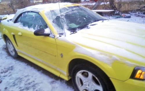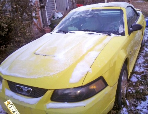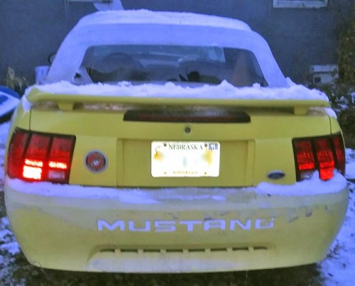 Has a set of tires, needs new ones, runs perfect, needs a new convertible top, hail took out the back window. New top $157 on eBay, V6 motor, needs a battery. Beige leather seats, rear spoiler. Yellow Ford Mustang convertible with low mileage, only 75k mi., for $2K by owner in NE 69361.