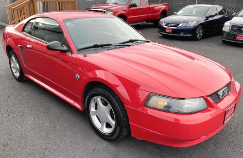 One-owner Ford Mustang 40th Anniversary 2004 red exterior paint for $3K (+fees) in Tacoma-Washington. Vehicle runs and drives good. This is a nice 2-door sports car at a killer affordable price. Carfax retail price us $6,870 / KBB retail price is $4,285. This is a locally owned car. Come and drive it today at Fleetline Auto Sales on 4710 S. Adams St.. The average miles per year is 12,970 which is low for its year. Take a look at it by yourself, we're open 7 days a week from 10:30AM to 6PM, no appointment needed, come on in. GREAT BUY!! Save $$ Buy here! Super clean and well-kept body. Tires are in pretty good shape. 5-speed manual transmission.