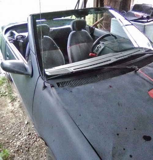 The vehicle runs and drives excellent. It does need a top, windshield cracked on driver side, and the hood repaired.