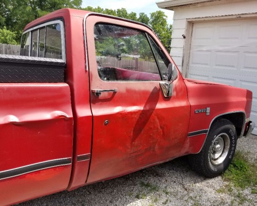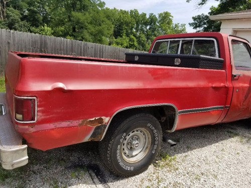 1982 GMC 150 Sierra for $2K in fair conditions, for sale by owner, located in Greenwood, IN 46142. cylinders: 8 cylinders drive: RWD fuel: gas paint color: red size: full-size title status: clean transmission: automatic type: pickup 1982 GMC Sierra Custom Red 2wd V8 350 Automatic Turbo 350 Trans Dual Exhaust Almost Brand new tires Headliner with speakers hooked up Toolbox with lock and key Runs and drives like a champ Drag race edelbrock carb Drove this from Seymour to Greenwood Was an old farm truck Driven to Northern Indiana and back multiple times Factory A/C truck but the previous owner disconnected Needs a few gauges Other than that a good 35-year-old truck Just curious what is out there Willing to trade for 4wd or solid vehicle just hit me up Title in hand $2100 OBO NO LOW BALLS