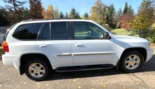 Fully loaded GMC Envoy. Runs and drives excellently. Reliable 4.2L inline-6 engine and 4x4 drive. Great SUV for winter driving. Oregon-branded title vehicle (title will be reconstructed). In real good condition. Features roof rack, chrome rims, fog lamps, bug screen, running boards, tinted windows, rear trailer hitch, leather interior in good condition for year, all power options.