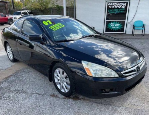 Gorgeous sporty 2-door coupe 2007 Honda Accord EX-L V6 for $6K with 184k miles, black on black exterior paint. Vehicle looks awesome inside and out. It comes with tinted windows, sunroof, black leather interior, dual exhaust, tires in good condition, sporty seats, power driver's seat, multi-function steering wheel, HomeLink, power windows, locks and mirrors, alloy wheels, etc. Gas saver vehicle. Buy-Here, Pay-Here financing is available.