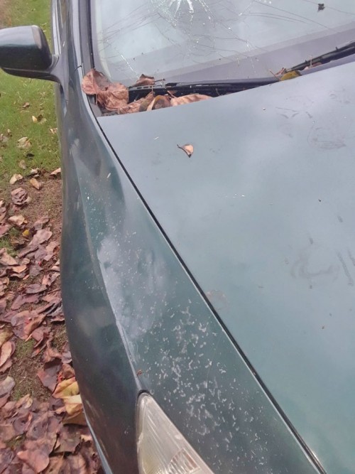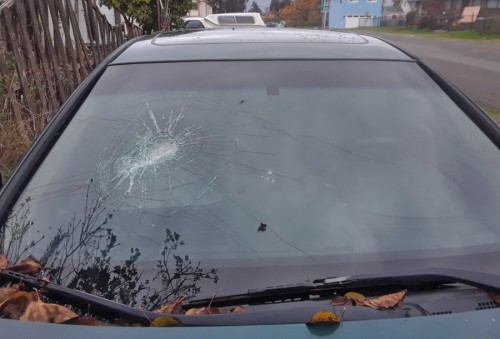 Front windshield PASSENGER side smashed in needs replaced.