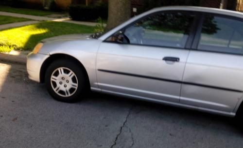 GREAT VEHICLE. ONE OWNER. IT RIDES VERY WELL, MINOR DAMAGE TO RIGHT FROM END. ALSO THE HOOD LATCH IS BROKEN BUT THE HOOD IS SECURED. CRANK RIGHTS UP IN THIS BAD CHICAGO WEATHER. THE ENGINE AND TRANSMISSION IS GOOD. NEED MINOR REPAIRS. HONDA CIVIC 2002, 135,000 MILES WITH A CLEAN TITLE.