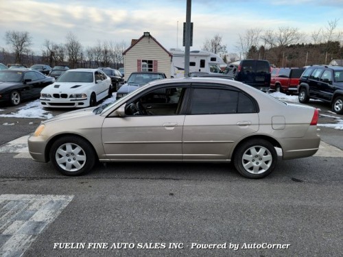 Four-door sedan Honda Civic EX 2002 under $4K in Saylorsburg-Pennsylvania. NO accidents or damages reported on its Carfax report. Four previous owners. Low mileage for the year. Driven an average of 10k miles per year. Dark-tinted windows, windows wind deflectors, tan clean interior, Feel right at home behind the wheel of this reliable Japanese car. The 1.7L L4 SOHC 16V engine gets great gas mileage (MPG City 31 - 32mpg / MPG Highway 37 - 38mpg) and performs well on the highway.