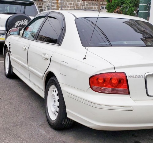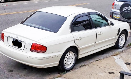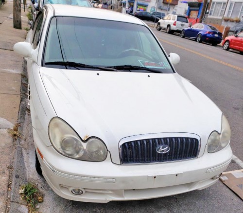 White sedan Hyundai Sonata 2005 for less than $2K in good condition, with clean title, located in Philadelphia 19134, for sale by owner, 156k miles, loaded with a 2.4L 4-cylinder engine, automatic transmission, power locks and power windows. Has new front axles, new starter brand, new windshield window, four brand new tires balanced and aligned, brand new front and rear breaks, brand new battery, new AC condenser, just need air compressor for AC to work, aftermarket Bluetooth radio with remote and USB connect. I added a dual USB port and removed the cigarette lighter port, new LED headlight bulbs, has a muffler leak/ hole which makes it sound a bit loud. Car body is OK but not perfect as you can see in pictures there are scratches and a little rust. Rear window is tinted, back windows are tinted but tint needs to be replaced.