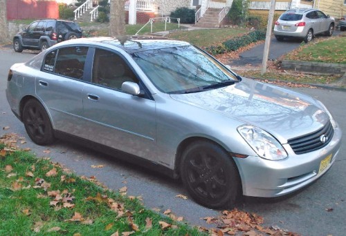 Luxury sports sedan Infiniti G35 with 160k miles for only $3K. Silver color, year 2003. Runs and drives great. Needs nothing. For sale by owner in Bloomfield, NJ near Newark, NYC and Jersey City. Loaded with beige leather seats, black alloy wheels, tinted windows, all the power options, premium stereo, etc.