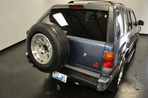 This SUV has the perfect size and is great for use it in a small farm. This blue one comes equipped with dark tinted windows, silver alloy wheels, grille guard, site steps, tires in very good condition, power windows, roof rack, full-size spare tire mounted in the cargo door, illuminated entry system, center armrest with storage, AM/FM stereo, AC, trailer hitch (towing package), etc.