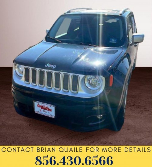 2015 black Jeep Renegade with 69k miles in Clementon-New Jersey. Boasting superb craftsmanship, this Jeep Renegade represents a faultless convergence of unparalleled power and beauty. With a Regular Unleaded I-4 2.4 L/144 engine powering this Automatic transmission, it is an understated expression of your dominion over the open road. It is stocked with these options: WHEELS: 18 X 7.0 ALUMINUM POLISHED, TRANSMISSION: 9-SPEED 948TE AUTOMATIC (STD), SATELLITE RADIO (subscription required), REMOTE START SYSTEM, RADIO: UCONNECT 6.5AN AM/FM/SXM/HD/BT/NAV, QUICK ORDER PACKAGE 27G-inc: Engine: 2.4L I4 MultiAir, Transmission: 9-Speed 948TE Automatic, PASSIVE ENTRY/KEYLESS-GO, MY SKY POWER/REMOVABLE SUNROOF, ENGINE: 2.4L I4 MULTIAIR (STD), and BODY-COLOR ROOF