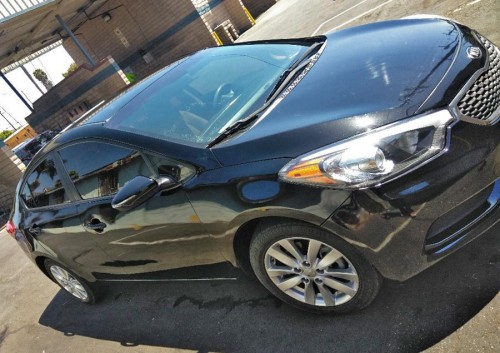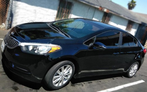 Black KIA Forte 2014 with clean title, tags until April 2020, smog check done, 90K miles only, brand new tires 4, automatic transmission, dark tinted windows, alloy wheels, etc.