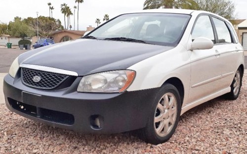 Good looking and affordable car under $2K by owner in Arizona. Check out in Litchfield Park 85340, this 2006 Kia Spectra5 hatchback with clear title and 159K miles. Clean interior, AC, heat, new alternator, new radiator, CD player, oil recently changed, electric locks and windows. This car runs good as it is, and has no leaks. It could use a frontend alignment. Reliable, gas saver economy car. six23#4six9=one937