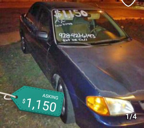 This Mazda Protege '99 is a great gas saver car. It has brand new tires, AC, stereo with CD player, and looks clean inside and out. If looking for a $1K-$1500 affordable car in Phoenix AZ, then call or text Jen at 928-421-6144 to check out this economy sedan for sale by owner.