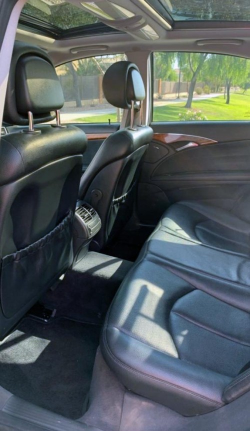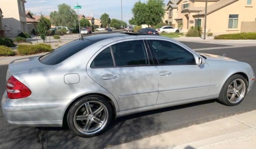 The vehicle is freshly detailed, fairly used, and runs smoothly. Sunroof will not close properly and the AC has ran out. Silver Mercedes-Benz E350 2006 with 159k miles in Arizona 85326. Asking $6K. Low profile tires, sporty rims, well-kept black leather interior, fog lamps, rear AC, panoramic sunroof, infotainment system, power seats, tinted windows, etc.