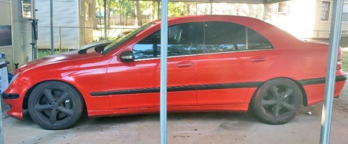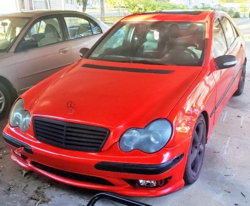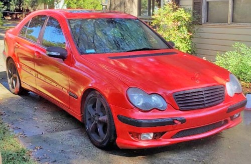 Red Mercedes-Benz C32 AMG for $3K by owner in Charlotte, NC. The car is in great shape the interior is perfect except for small tear in driver seat. All body panels are straight no dents and car runs perfectly. It has Eurocharged tune, lowering springs, 10.1" touch screen Android media center with backup camera, Bluetooth etc... on current setup it is 400+ and having a positive displacement supercharger the power comes on instantly. My buddy has a 2010 335i M Sport with JB4 tune and down pipes and I can pull 3 cars pretty easily. This car is a steal at this price point and they are rare to begin with. Plasti dip car sprayer l Kit comes with the car. Car does have a salvage title.