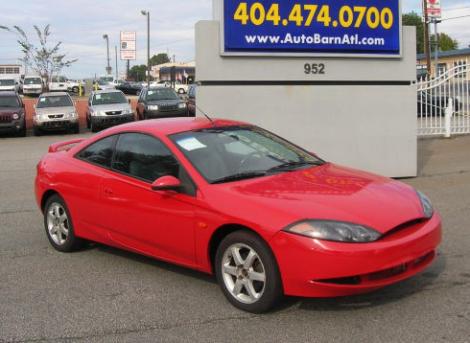 Sporty coupe priced under market. This red Mercury Cougar V6 2000 for sale in Atlanta, GA, for under $3000, is a trade-in that is ready to go. This vehicle is tagged as one of our "Manager's Special" priced vehicles. It looks pretty good and is very well-kept and maintained from inside to as outside. This economy Cougar comes loaded with aluminum wheels, tinted windows, a rear spoiler, and everything powered. It is good on gas and you will love its handling and how fun to drive it is. This little coupe offers a lot of style and comfort and could be yours today for this low and crazy price.