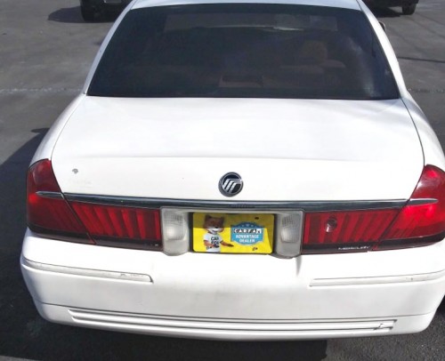 Automatic. One-owner Mercury Grand Marquis in San Antonio 78212. White exterior paint. Decent gray cloth interior. Cruise control. Tinted windows. Clean title.