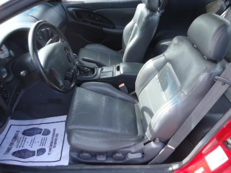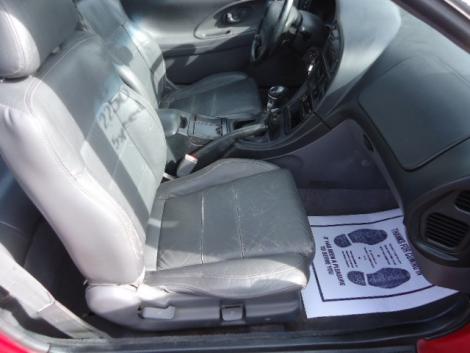 The condition of this 2-door sporty Eclipse coupe is average. It has damage on the right side, and the interior shows some normal wear. Despite this, for its low and affordable price, this Eclipse still looks good and comes loaded with some cool features such as black leather sport seats, sunroof, rear spoiler, Kenwood custom stereo with CD player, aluminum wheels, and fog lights. The rear seat upholstery looks good, and the tires and wheels look like new.