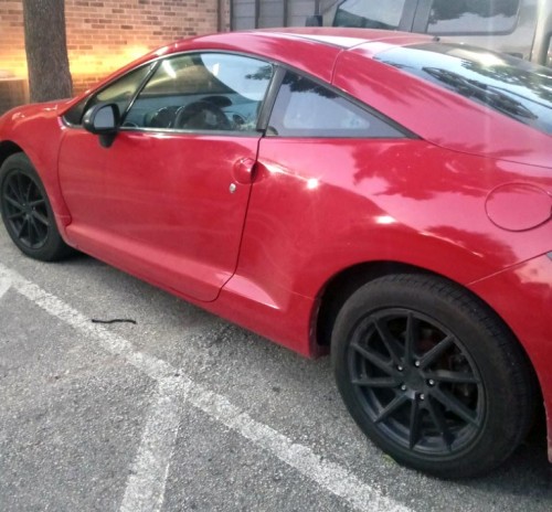 Two-doors sporty coupe Mitsubishi Eclipse 2006 (red exterior), asking for $2,200, located in Houston-Texas, 183k miles. Car is in good condition, has new tires, new rims, good exterior paint, good engine, black rims, tinted windows, rear spoiler, etc. If interested or have any questions, get in touch, send a text msg or use the seller contact form on this page.