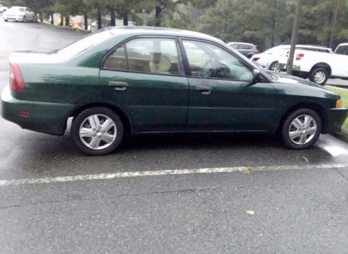 Mitsubishi Mirage for less than $1K by owner in VA. The car has new tune up, oil change, catalytic converter and transmission sensor. The rear window is bad, it doesn't come down. The car loose power going up hills and also needs paint job.