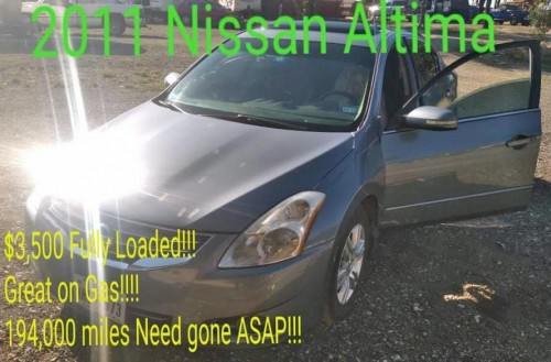 Price reduced from $3,500. Nissan Altima 2.5SL 2011 with 197k miles for less than $3K in Tolar-Texas. Loaded with black leather interior in decent condition, sunroof, tinted windows, dual exhaust, all power options, start button ignition, by owner, vehicle runs and drives good, tags are good, excellent on gas, great starter vehicle, need it gone ASAP.
