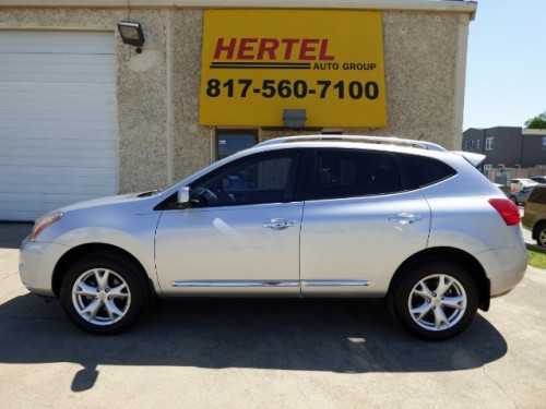 LOCALLY OWNED -- NAVI & BACKUP CAMERA -- SUNROOF -- CLEAN CARFAX! Hertel Auto Group is pleased to offer this well-equipped, sporty yet frugal 2011 Nissan Rogue SV FWD SUV for sale in Fort Worth Texas. Bought brand new from Nissan of McKinney Texas in December of 2010, this good-looking SUV has spent its entire life right here in the North Texas area. Its completely clean CARFAX Report also shows that it has been maintained and serviced very well during its ownership. Whether you've been trying to find a good first car; a compact SUV to send a kid off to college in; a daily driver; or an upgrade in size and space for a growing family, this is a great deal for a reasonably new SUV with less than 100K miles and very well equipped. First introduced in 2008 to compete with the likes of the Honda CR-V, Toyota RAV4, Hyundai Tucson, Kia Sportage and Mazda CX-7, the Rogue stands apart with its high quotient of fun-to-drive attributes; a surprisingly comfortable ride and high-quality build materials. On the road, this Rogue's peppy 2.5-Liter 4-cylinder engine had original specifications of 170 Horsepower and 175 lb ft of torque while still returning up to 28 mpg on the highway - very good fuel economy for this size of an SUV. And while it may not win any V8 stop light wars, it will still sprint from 0-60 in just over 8 seconds. Mechanically, it starts, runs, drives and performs exactly like you'd expect it to. All four 225/60R17 tires mounted on OEM 17" Alloy Wheels are in very good condition. On the outside, this rust-free Rogue sports the beautiful Shimmering Silver Metallic Paint Scheme that is complimented by a Grey Cloth interior. Inside, its smoke-free interior comes nicely equipped with the upgraded SV Package that includes Factory OEM Navigation; a Backup Camera; Bluetooth; Steering Wheel Audio Controls; Power Driver's Seat; Keyless Ignition; Keyless Entry Touch; Power Windows, Locks & Mirrors; Cruise Control; Tilt; Keyless Entry; Traction Control; A/C; and a CD Audio System with an AUX Port. As with any pre-owned vehicle, it does have the usual amount of cosmetic imperfections that are inherent to a vehicle of this age and mileage. We invite you to view all of the photos that are available on our Web Site and determine for yourself if it meets your expectations for a vehicle of this age and price. If it does, we then welcome you to stop by for a viewing and test-drive of this nice-looking 2011 Nissan Rogue SV FWD SUV. We've priced it below all of the Retail Values and expect it to sell quickly! Don't let it pass you by!
