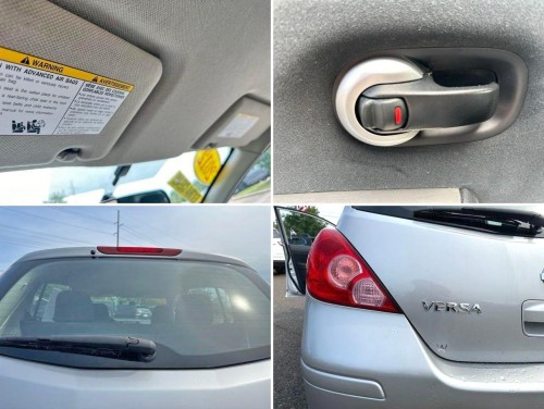 This vehicle is powered by a 1.8L DOHC 16-valve 4-cylinder engine that delivers up to 122 hp @ 5,200 rpm and yields up to 32 miles per gallon on highways. This Sentra HB also features black cloth interior upholstery that is in great condition, like-new tires, stereo with auxiliary audio input, power windows, locks and mirrors, auto transmission, and ample headroom, legroom, and cargo space for a subcompact vehicle. These Versa are one of the most budget-friendly vehicles in its class with a low starting price.