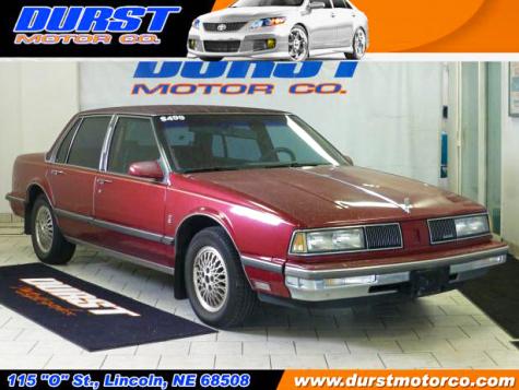 Considered a luxury sedan in its time, this Oldsmobile Delta 88, manufactured in 1987, Royale Brougham trim model, stands out for being a solid and safe vehicle, which has an extra comfortable interior where you could easily seat up to six people in it thanks to the split front bench seat. This is one of the 3800 Series I which comes with a powerful and fast 3.8L V6 engine that delivers up to 25 miles per gallon on highways. This maroon Delta 88 comes with low miles bearing in mind this low price and also according to some owner reviews of these vehicles that have achieved over 300k miles. These Oldsmobiles are known for their solid structure and long-lasting life. The overall condition of this 1987 is good as it hasn't major issues, dust or dents. The tires are in decent condition and the red interior upholstery is not ripped and has been well cared for. This Delta 88 comes equipped with power windows, power locks, and mirrors, power steering, power driver's seat, aluminum wheels, tinted windows, stereo with CD player, AC, fog lights, and more. If you are looking for where to buy an inexpensive classic American car under 500 dollars in good condition and located in Nebraska, you should come to Lincoln and look at this fast and safe sedan. At Durst Motor Co., we have over 95 years of experience in the auto industry and believe in having a fair and direct approach to helping our customers find the car they want at the price they can afford. Servicing Lincoln and Southeast Nebraska.