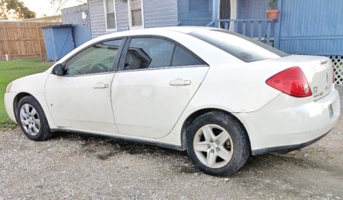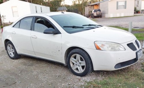 Four-door sedan Pontiac G6 2008 (white) for $3K in Hamshire-Texas. The vehicle is in perfect condition inside and outside. Car runs but won't go past 50, it needs a Mass air flow sensor that's $60 at O'Reilly Auto Parts. The AC works and comes with touch screen radio. Black cloth interior in good condition. Alloy wheels. Clean title.