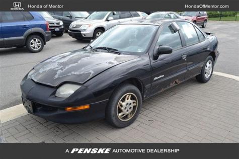 Looking for a used economical car priced at less than $1K in Ohio? If so Mentor of Honda is waiting for you to show you this little but efficient and fun-to-drive 1-owner and sporty sedan, Pontiac Sunfire, SE trim model, black color, manufactured in 1999, which has 157k miles and its overall condition is fair. This little runner is sold AS-IS with no warranty. The dealer has not worked or done any mechanical service on this car. So, if you are interested, it would be better if you first come and test it by yourself under your responsibility or bring a friend who likes or knows how to work on cars so that he can check it and see if it has any major mechanical issue. Note that this Sunfire needs some tender loving care as it has some rust and the hood needs some paint. This 4-door sedan comes equipped with a rear spoiler, stereo, power steering, traction control, ABS brakes, light tinted windows center console, and in general, the basic equipment. It has a racing style, and comfortable interior and is a great economical and inexpensive car for first drivers or first owners. This Pontiac comes loaded with a 2.2L 4-cylinder engine that yields up to 34 MPG on highways, so if you want a vehicle that helps you save money on gas, this is perfect. For more detailed information about the overall interior and exterior condition of this vehicle, please call Honda of Mentor at 888-440-2417. Let us tell you about our best car deals too on new cars.
