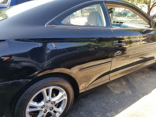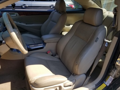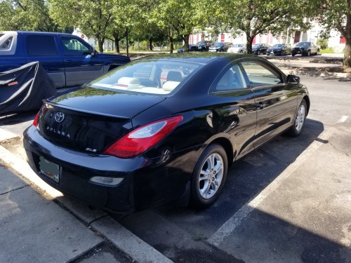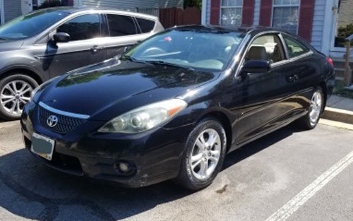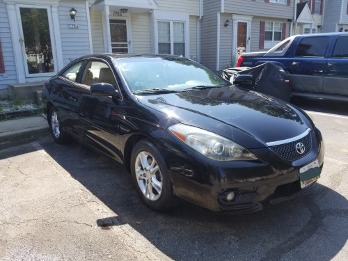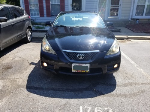 Low mileage 2-door sporty coupe Toyota Solara 2007 (black exterior) by owner in Laurel-Maryland, asking for $5K, has only 101K original miles (driven an average of under 7,500 miles per year), MD INSPECTED, clean Interior, loaded with heated leather seats, AC, radio, USB port, Bluetooth, cruise control, power windows, power seats, keyless remote entry, sunroof, dual and side airbags, fog lamps, premium beige leather seats in good condition, power seats, multi-function steering wheel, MP3 player, heated seats, etc.